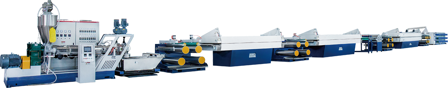 設(shè)備適用于生產(chǎn)聚丙烯(PP)新料,聚丙烯(PP)回料,以及生產(chǎn)新料與回料混合料。可用于草坪地毯的紗線,PP繩子等等。